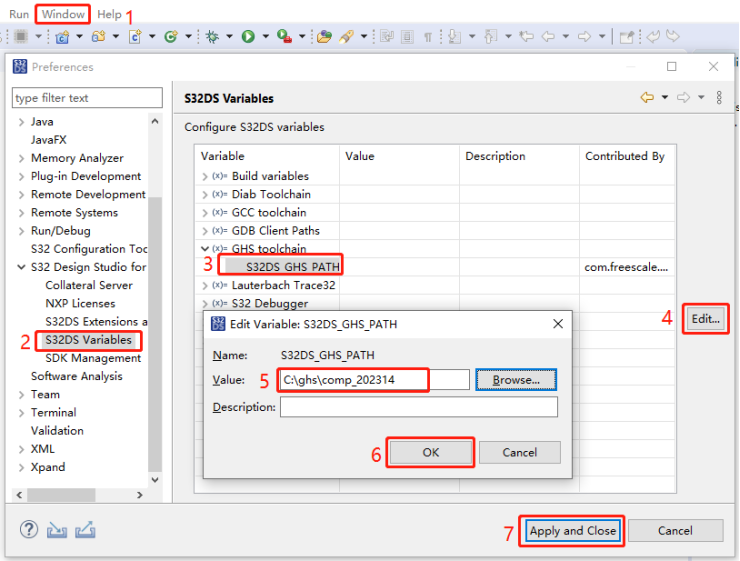 "S32DS Variables"設置 S32DS_GHS_PATH 這個變量 (例如" C:ghscomp_202314").